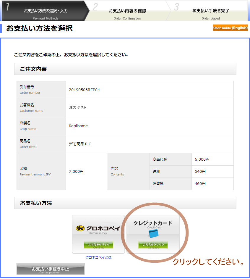 カード決済の手順: PC