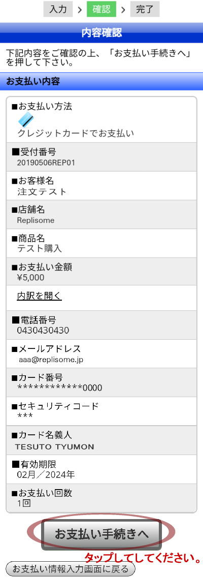 内容をご確認の上、【お支払い手続きへ】
