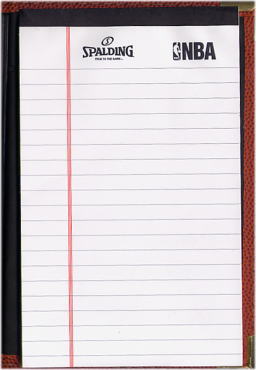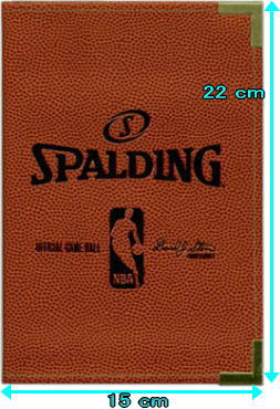 バスケットボールと同じ素材の表紙に、Spalding社の名前とNBAのロゴマークが刻印されています。表紙のデザインは、表も裏も同じです(画像1・2)。 およそA5(A4の半分)と同じ大きさです。