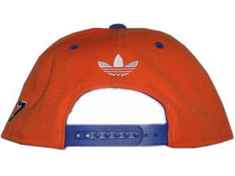 New Era 社のデザインとしても有名な、キャップのツバが平たくなったモデルの、2トーン(オレンジ × ブルー)キャップです。