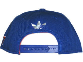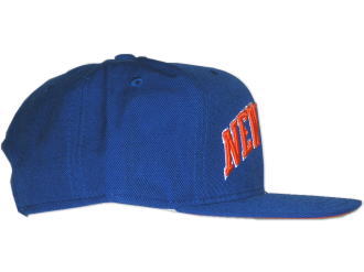 New Era 社のデザインとしても有名な、キャップのツバが平たくなったモデルの、2トーン(オレンジ × ブルー)キャップです。