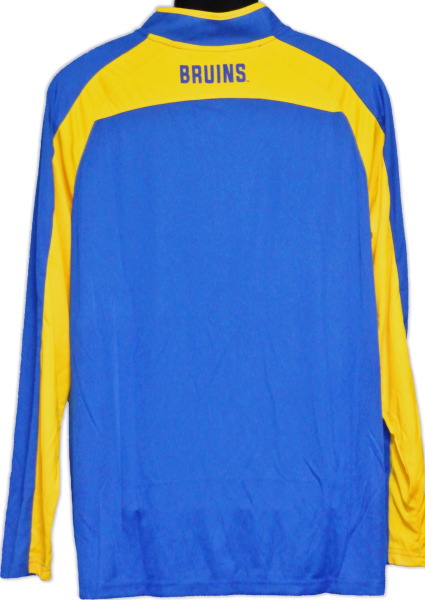 | 備考 | UCLAの2トーンウェアです。 薄手の腹部までチャックを下げて着脱する、かぶり物のつくりです。 本体は、アームスリーブよりも少し厚いポリエステル生地でできており、向かって右胸にはチームロゴ、背面のうなじにチーム名がプリントされております。 こちらの品質について 5枚目の画像をご覧ください。 袖口そばの一部に、2cmほどの縫い付けの不良がございます。 上のような品質とワンサイズのみの入荷ため、値引きしております。 お求めの際は、こちらの品質をご了承の上、ご注文くださいますようお願いいたします。 |