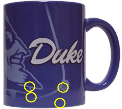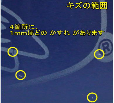 DUKE大ブルーデビルズのマグカップです。 カップ周囲に、マスコット、シルエット調マスコット、大学名がプリントされております。 この商品は、下記の品質事情から値引きしております。こちらの品質を、ご理解の上、お求めいただけますようお願いいたします。 5枚目以降の画像をご覧下さい。 カップに3箇所にわたってキズがございます。 それそれ、■で範囲を示した画像と、そのままの画像を見比べて下さい。 また、どのくらいの大きさなのかにつきましては、カップ全体の画像と見比べていただければ、よりわかりやすいかと思います。 画像5・6 ロゴ周辺に、3箇所ほど幅1ミリ以下のかすれキズがあります。最長の物で、6cmほどです。 画像7・8 大学名の下 4箇所に、幅1ミリほどのかすれキズがあります。 画像9・10 底面と内側の底面に、幅1cmほどのキズがあります。 |