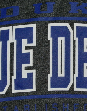 | 備考 | フロントに、大学名・チーム名・ブルーデビルのロゴが、背面には大きなブルーデビルロゴがプリントされた、WプリントTシャツです。 生地素材にポリエステルを採用しており、同じ大きさのコットン100% Tシャツよりも軽く、サラサラとした手触りです。 また、撥水性が高いため、速く乾燥するのが特徴です。 カラーリングは、グレーがかったチャコールブラックです。 |