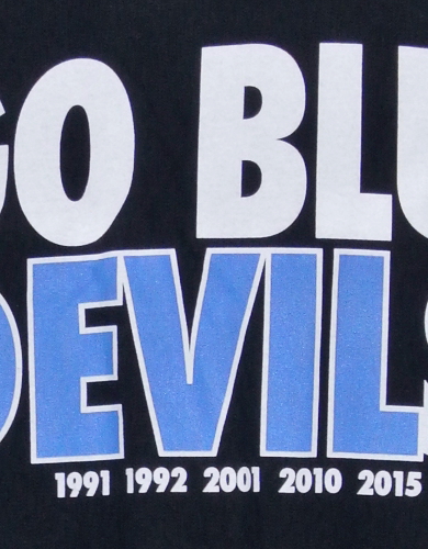 | 備考 | 2014-15 優勝記念Tシャツです。 フロントにはDロゴと優勝の旨、これまでの優勝年が、背面には、Go Blue Devils のスローガンと優勝年がプリントされています。 |