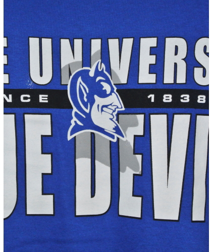 | 備考 | ブルー × ブラック × ホワイトの大学のトリコロールTシャツです。 ブルーの生地に、大学名とチーム名がホワイトでプリントされ、いずれの文字もブラックで縁取りされています。 大学の創立年がブラックの帯とホワイトの文字で、また、マスコットロゴとそのシルエットがプリントされています。 プリントはフロントのみです。 |