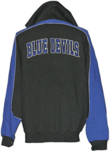 | 備考 | フロントが全開するジャケット型のパーカー、DUKE大のチームカラー、ブルーとチャコールブラックの2トーンパーカーです。腹部にはポケットがあります。 コットンとポリエステルの混成生地に、フロントには大学名、背面にはチーム名のパッチワークが縫いつけされております。起毛した生地が別途、裏生地に採用されており、保温効果を高めています。 安価な入荷だったため、今回に限りその分を価格に還元しております。 値引きによる品質の低下等は、ございませんのでご安心下さい。 |