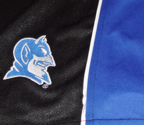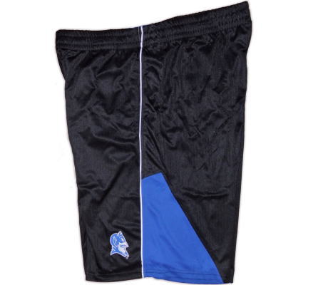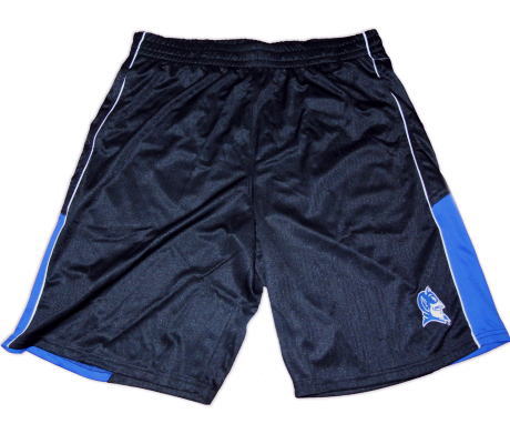 | 備考 | デューク大学のプラクティスショーツです。 スクールカラー、ブラック × ブルー × ホワイト のトリコロールで、メイン部以外のホワイト、ブルー部も、本体とは別途の生地縫いつけとなっております。 また、本体には、ウェスト調節用のヒモ、左右にポケットがございます。 光沢のあるサラサラした手触りで、薄手の100% ポリエステル生地で出来ています。 マスコットのブルーデビルは刺繍です。 |