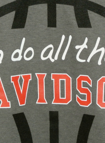 | 備考 | ステフィン・カリー選手の出身大学、デビッドソン大から直輸入の商品です。 チャコールブラックの生地に、大学名、バスケットボールのイラスト、「自分は何でもできる・プレーできる」と、コートの外・中でのスローガンが、チームカラーの3色でプリントされています。 プリントはフロントのみです。 |