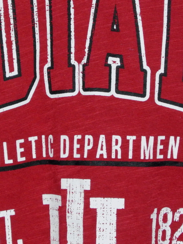 | 備考 | 本商品は新品ですが、生地の色は少しくすんだワインレッド、生地本体は薄めで柔らかく、ユーズド感を出した造りとなっております。 フロントに、大学名とチームロゴが、背面にはインディアナ州とロゴが、ラバープリントされております。いずれのプリントも、かすれた仕様となっています。 |