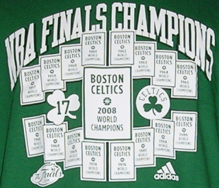 | 備考 | ビル・ラッセルやラリー・バードといった歴代の選手らが築いてきた優勝の足跡に、今季07-08シーズンの優勝が加わったことを記念したTシャツです。 |