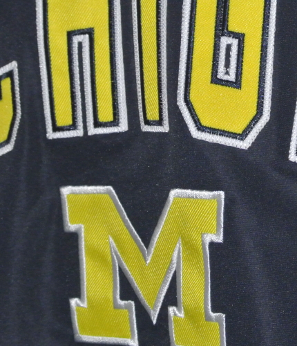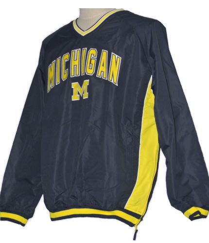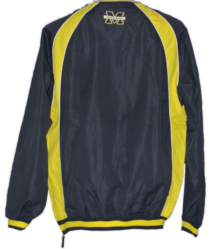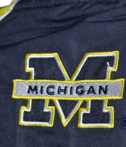 | 備考 | ミシガン大のウォームアップウェアです。 ブラックに近い、ダークネイビーの本体に、両裾から背面側の肩にかけてイエローのラインが入っています。 また、イエローのラインとネイビー(生地)の境目に、細いホワイトのラインが入っております。 裏地には、汗をかいた際に生地が密着しないようにするためのメッシュ生地が採用されており、裾には容易に着脱できるようにチャックが、また左右の腹部にはチャック式のポケットがあります。 フロントの大学名、うなじのロゴはパッチワークです。 繊維の特性上、全体を撮影した際に、実際の商品以上の反射・光沢が発生しております。 具体的な色・質感は、裾やパッチワークのアップ画像(画像4・5)をご参考にして下さい。 |