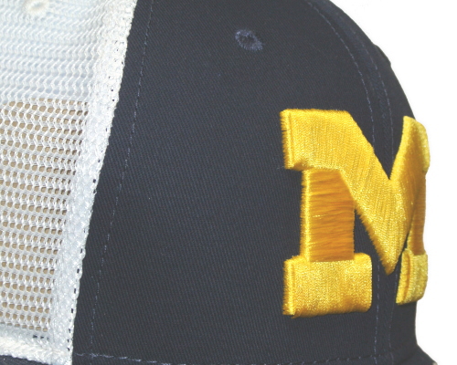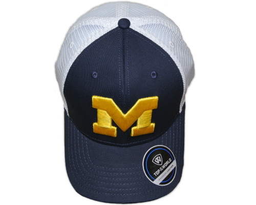 ミシガン大スクールカラーのネイビーブルー × ホワイトの2トーンメッシュキャップです。