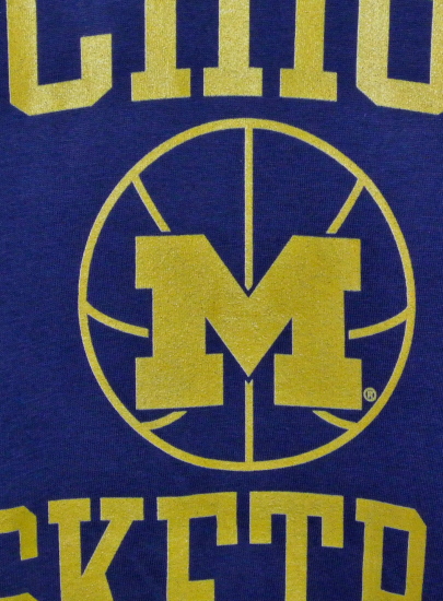 | 備考 | ミシガン大のチームカラー、ネイビーブルー×メイズ(イエロー)の2トーンカラーTシャツです。 大学名、バスケットボールに囲まれたMロゴ、BASKETBALLの文字がプリントされております。 プリントはフロントのみです。 |