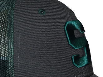 カラーリングは、メッシュ部がダークグリーン、本体およびツバはグレーになります。