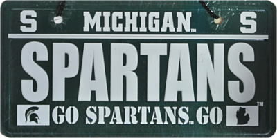 ミシガン州立大学名・チーム名・スローガンが描かれ、四隅にはSロゴ、マスコットロゴ、ミシガン州が描かれております。