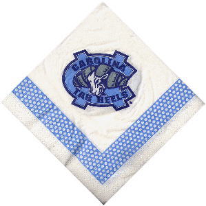 ノースカロライナ大のロゴマークが入ったペーパーナプキンです。1パック内に、24枚入っております。上の画像は、4つ折りの状態で一辺約17cmの正方形になります。そのため、広げた実寸は34×34cmになります。
