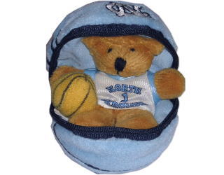 ボール中央のチャックを開けると、中から、ノースカロライナ大学のジャージを着て、バスケットボールを持ったクマが現れます。