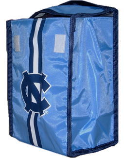 スカイブルー × ネイビーの化学繊維でできたランチバッグです。