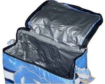 | 説明 | スカイブルー × ネイビー × ホワイトの化学繊維でできたバッグです。 断熱仕様となっており、保温機能を有していることから、ランチバッグとして、また、高さもあることから、氷水を入れてコールドドリンクのサーバーとしてもお使いいただけます。 NCのロゴ・ストライプの線はラバープリント、上部には長さ調節可能な肩掛けのベルトがついております。 開口部は、チャックによる開閉(画像5・6)です。 元々、ランチバッグとして作られた商品ですが、リストバンドやテーピングなどの小物も収納可能です。 |