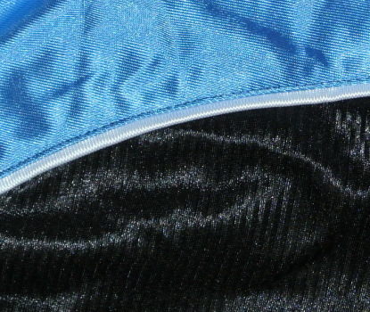 | 備考 | ブラック × スカイブルー × ホワイトのトリコロールカラーのプラクティスショーツです。 本体には、ウェスト調節用のヒモ、左右のポケットがあります。 光沢のある100%ポリエステル生地に、パッチワークのNCロゴ、刺繍でCarolina の文字が入れられており、特に、生地のブラック部は、細いストライプ仕様となっております。 |
