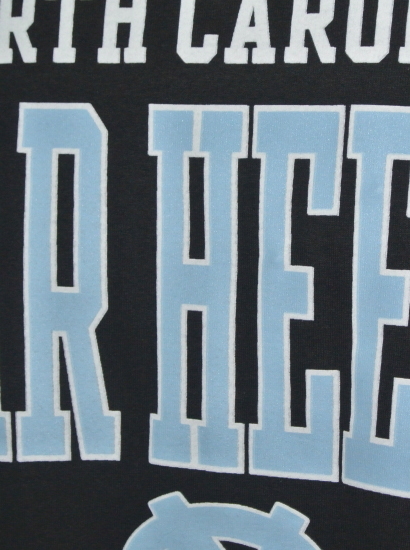 | 備考 | ブラックの生地に、ホワイトで大学名、チームカラーのカロライナブルーでチーム名、ロゴがプリントされています。特に、チーム名とロゴはホワイトで縁取りされています。 プリントはフロントのみです。 |