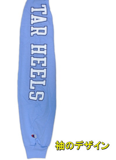 | 備考 | ノースカロライナ大のWプリント・ロングスリーブTシャツです。 フロントの右胸部にチームロゴが、背面には大きなロゴ、CAROLINA の文字、チーム名、大学の創立年がプリントされております。 向かって右袖にも、チーム名「TAR HEELS」がプリントで入れられております。 |