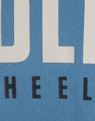 軽く、サラサラした手触りの生地に、「 Carolina Tar Heels 」とラバープリントされております。