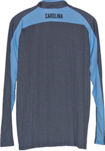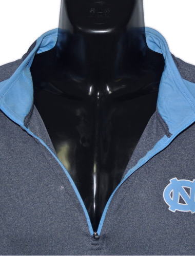 | 備考 | グレーに近いチャコールブルー × カロライナブルーのウォームアップシャツです。 サラサラとした手触りで、薄手のポリエステル生地でできており、厚めのシューティングスリーブ生地ほどの厚さとご理解下さい。 左胸にNCロゴ、うなじにCAROLINA の文字がプリントされています。 チャックを胸までおろして着脱します。 |