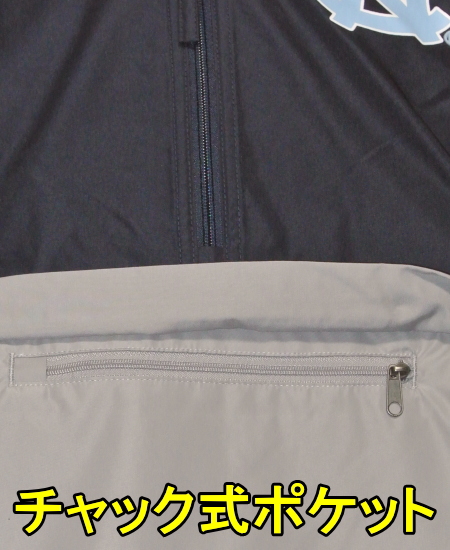 | 備考 | ネイビー×グレーのウィンドブレーカーです。 胸元までチャックを下げて着脱する、かぶり物のつくりで、フードおよび裾をしぼるヒモがございます。 フロントにはNCロゴ、背面には大学名がプリントされており、腹部には左右のポケットのほか、中央にチャック式のポケットがあります。 今回は、安価に入荷してきたため、販売価格に反映しております。 価格による品質低下はございませんので、ご安心下さい。 |