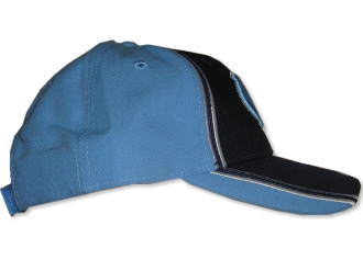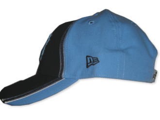 ネイビー×スカイブルー2トーンキャップです。フロントのNCロゴ・足ロゴは、刺繍になります。サイズは後方のアジャスターによる調節です。