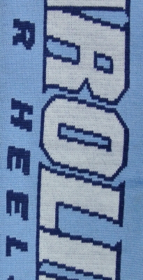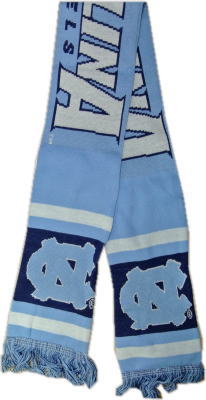 ポリエステル製の本体の表と裏に、「Carolina Tar Heels」と入れられたマフラーです。