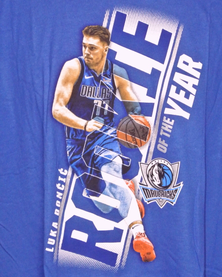 | 備考 | チームカラーのブルー生地に、チームロゴ、ルーキーオブジイヤーの文字、チームロゴ、ドリブルするドンチッチ選手の姿がプリントされております。 プリントはフロントのみです。 |