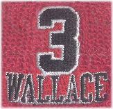 ロゴマークに対してタテに、腕を通します。また、他の選手に関しましては、ロゴのみを表示しております。