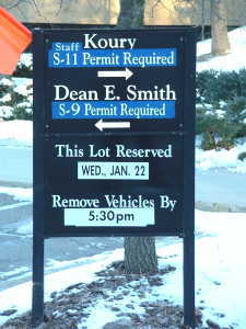 - 中心部からやや外れに来ると、この看板に出くわしました。どうやら、ディーン・スミスセンターはもう近いようです。