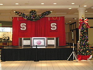 ご覧の通り、クリスマスのイベントステージで、ノースカロライナ州立大学のロゴが見えます。
