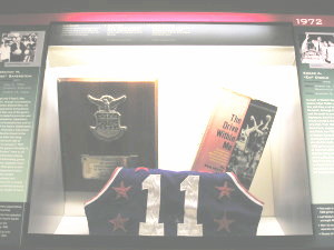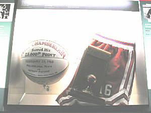 1968年の2月23日の対ピストンズ戦でのウィルト・チェンバレン選手(シクサーズ)の25000得点目の記念ボールと、1967-68シーズンにダラス・Chaparrals所属時に、クリフ・ヘイガン選手が着用していたショーツ、1945年にジム・ポラード選手へ贈呈されたトロフィーです。