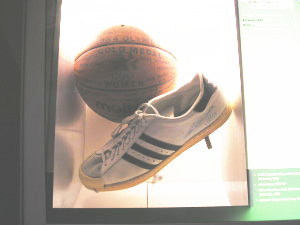 - 1984年のLAオリンピック女子チーム優勝記念ボールと、カリーム・アブドゥル=ジャバー選手のシューズです。