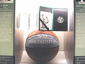 - ジョージタウン大学のコーチ、ジョン・トンプソン氏が1994年に500勝目をあげた際の記念ボールと、ケビン・マクヘイル選手引退記念コインです。