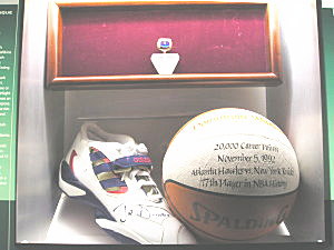 - ジョー・デュマース選手のサイン入りシューズと、ドミニク・ウィルキンス選手が1992年11月5日の対ニックス戦でキャリア通算20000得点を記録した(NBA史上 17人目)の記念ボールです。