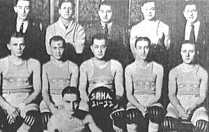 日本で初めて行なわれたバスケットボールの試合の模様で、1915年(大正4年)の大阪です。