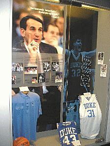 - ノースカロライナ大です。ジョーダン選手やカーター選手よりも、ディーン・スミスコーチに焦点が当てられており、コーチが当時着用していたスーツや、700勝を挙げた記念ボールが飾られています。