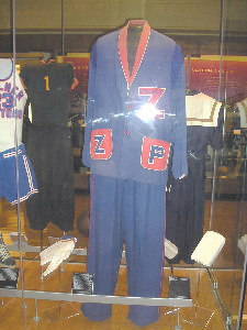 - 画像右の長袖の上下は、 All American のウォームアップウェア、その左隣の白い上下は、1930年当時の女子のユニフォームです。