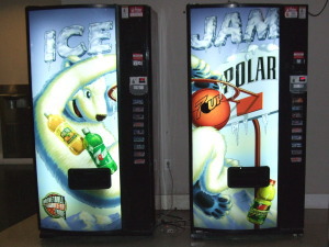 up」と飲み物の名前が、2台の販売機に跨ってプリントされています。