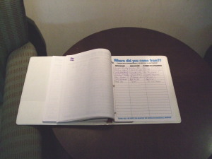 画像のノートは、このミュージアムを訪れてのゲストブックです。ノート本体は白でも、やはり文字はカロライナブルー、偶然なのか、備え付けのペンから出てくるインクも青色です。