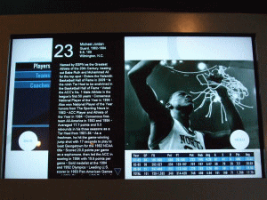 このケースにも、液晶モニタとスピーカーがついており、ジョーダン選手を動画にて紹介しています。