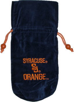 起毛した本体生地に、大学名・イニシャルロゴ・チーム名が刺繍されています。左右のヒモを引くことで口を閉じる様式です。
