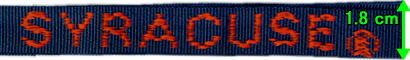 薄く扁平なネイビー生地に、オレンジで「SYRACUSE」の文字が刺繍されております。先端が画像2の通り着脱可能です。