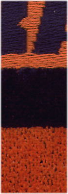 模様はブラックに近い濃紺色の染物になっており(カラーリングはネイビー×オレンジ)、「ORANGE」の文字の箇所は、刺繍の造りです。