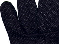 手の甲にはロゴマークが刺繍で入れられており、手の平の部分はブラックで、微小(1mm以下)なゴム粒がついております(画像2)。